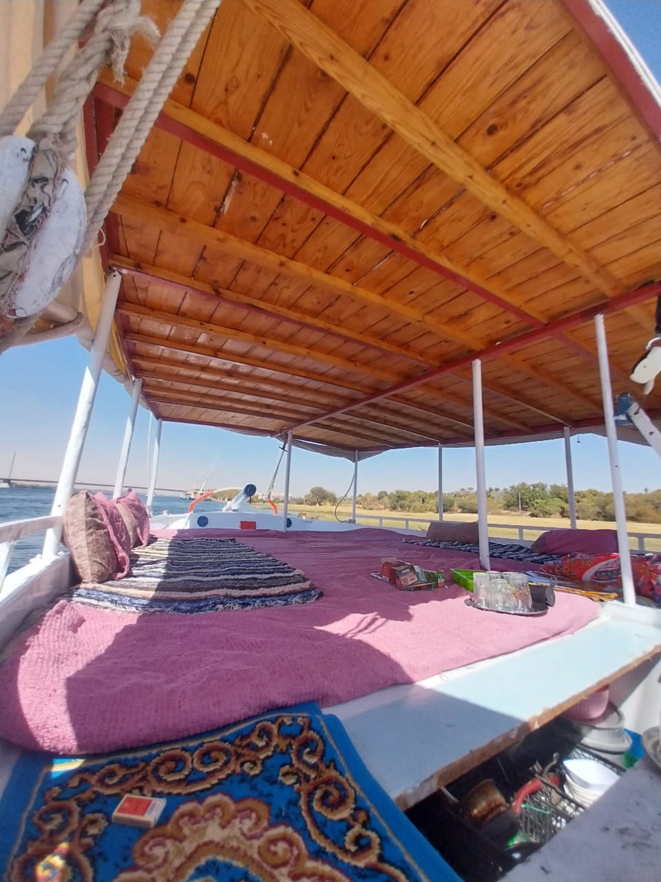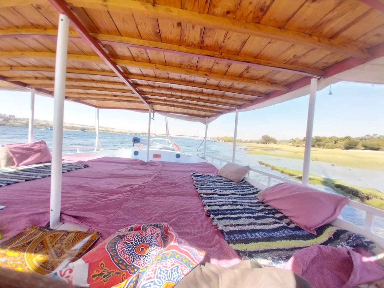 Petit-déjeuner à l'hotel. Matinée libre à Assouan et possibilité de faire la visite du site historique exceptionnel d'Abou Simbel, situé à 260 km au sud d'Assouan ( en option ...! ) En début d'après midi, nous embarquons à bord de notre felouque.  Déjeuner à bord et début de navigation  à la voile au rythme de doux  vent du nord, en profitant d'un paysage plus que fascinant sur les rives du Nil. Laissez-vous au fil de l'eau et ouvrez grand vos yeux; vous êtes les témoins privilégiés de la vie quotidienne, plus que millénaire , des habitants des villages. Accostage à Koubanya Diner et nuit à bord.